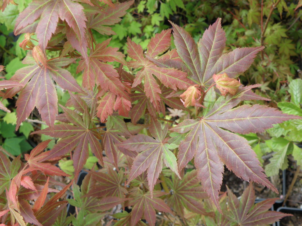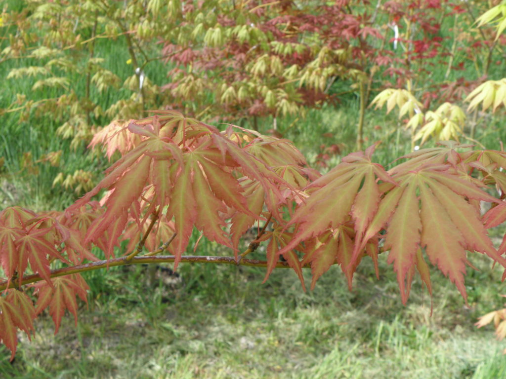 – japońskie A.palmatum, A.matsumurae, A.amoenum, A.japonicum, A.sieboldianum, A.shirasawanum, A.tenuifolium (czasem A. shirasawanum var. tenuifolium)